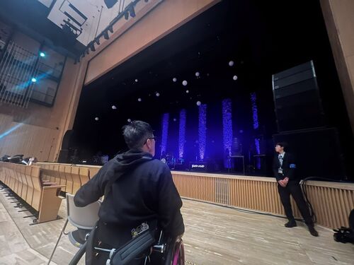 今回の会場は初観戦となる【神奈川県民ホール】 会場の名前からして車いす席は全然OKでしょう!と普通思いますが… 現地に到着したら、建物が古いなぁという第一印象。でも、県民ホールだから車いすとか考慮されてるに違いない。エレベーターで上がって、更に…