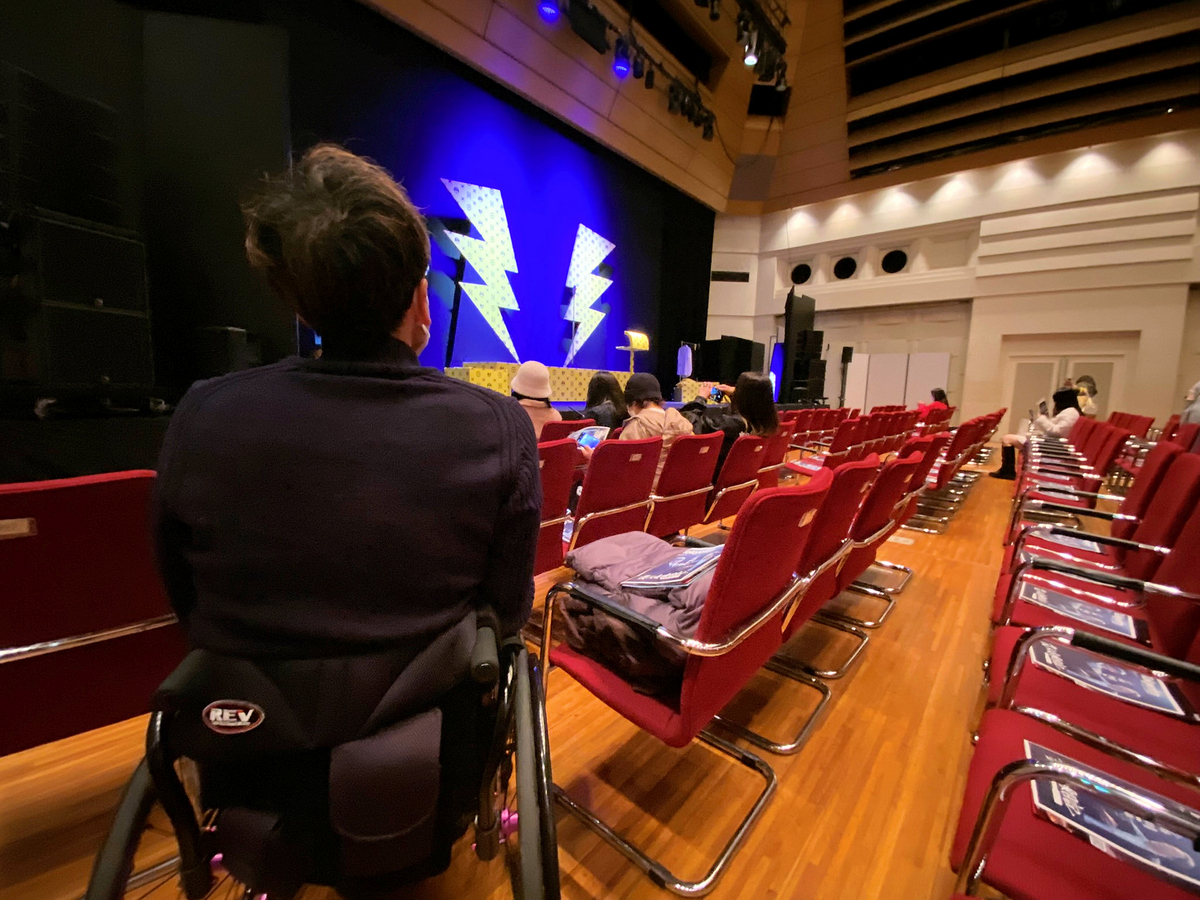 場所的にも名前的にも、車いすでの入場は全く問題無いだろう!と確信を持って会場へ。舞台鑑賞なので立つこともないだろうから、立てる車いすではなく普段使いの日常車で出撃。